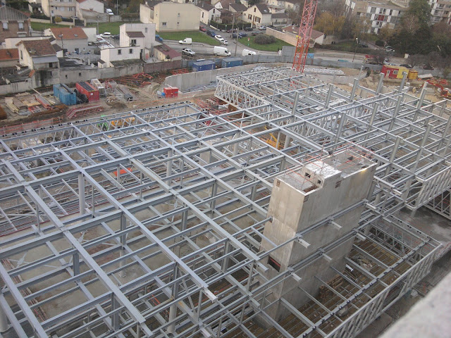 Nous avons eu ensuite la chance de faire un tour sur la terrasse qui sera fermée au public. C'est là qu'on se rend compte de l'immensité du bâtiment et de sa hauteur : on a une belle vue sur toute la Seine-Saint-Denis et bien au-delà sur une bonne partie de la région parisienne.